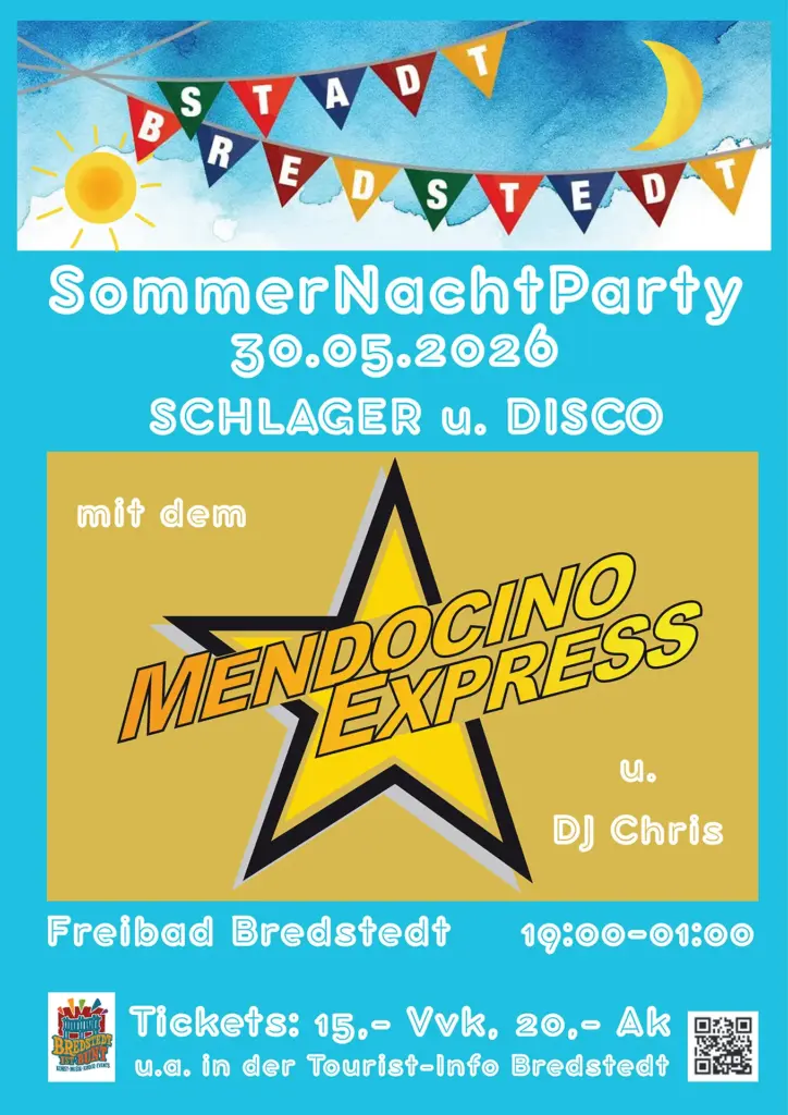 Nach dem Erfolg in 2025 und den zahlreichen positiven Rückmeldungen, findet sie auch in diesem Jahr wieder statt, die Open Air Party im Erlebnisbad in Bredstedt. Die Stadt Bredstedt als Veranstalter möchte an diesem tollen Ort gerne gemeinsam mit euch tanzen, feiern und Spaß haben.
